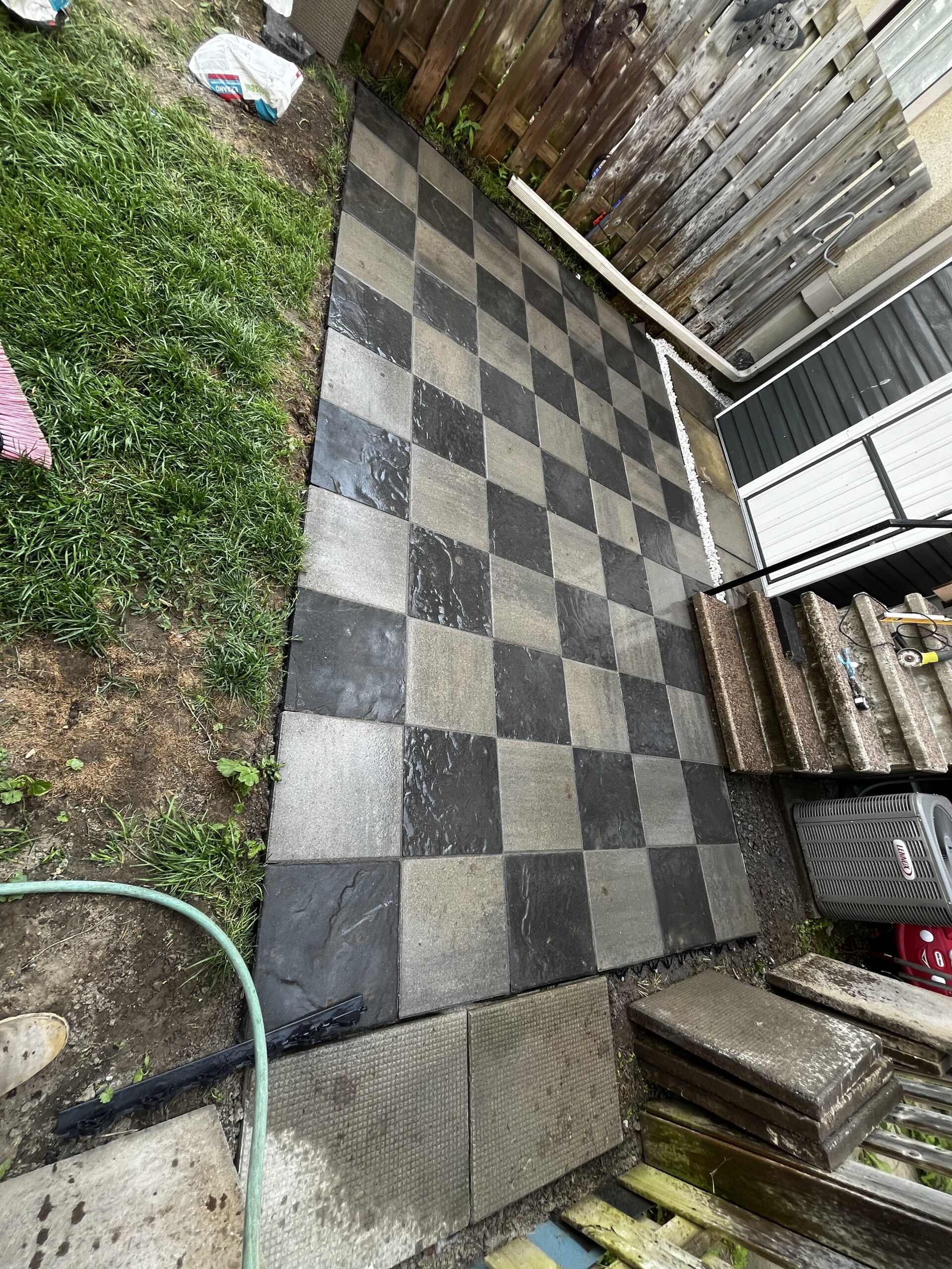 Place pavers in your pattern, add edge restraints, sweep joint sand (or polymeric sand).